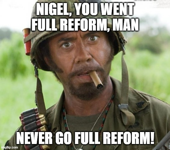 It's also odd because Reform have looked recently as if they want to actually win and govern. To do this they have a fairly uphill task to persuade the voters of 325 seats that they are close enough to post WWII social democracy to be trusted not to abolish important free stuff for Reform voters, who are heavily reliant on it.