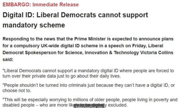 Any relationship between Davey's conference vote on changing opposition to ID cards and today's announcement from the governement, do we reckon? In no direction, either direction, or both?