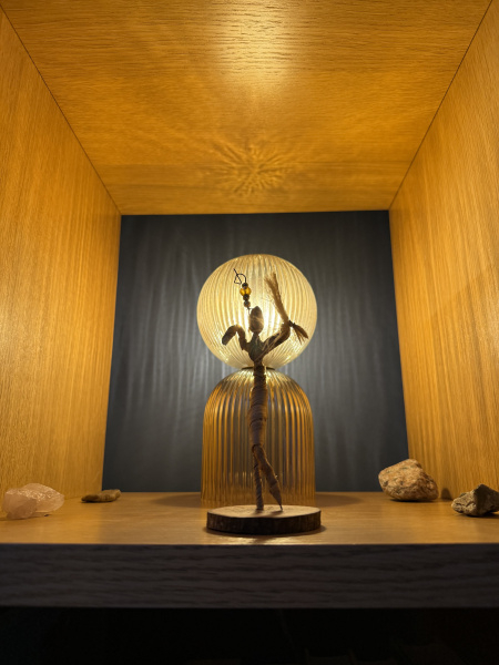 My black magic Siwa Egyptian Berber witch’s poppet, dancing on her circular dais of sliced ayahuasca, has a new stage. And a £28 Habitat lamp