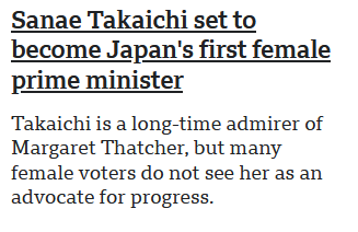 Rightwinger Sanae Takaichi elected by the ruling LDP to be the new PM of Japan