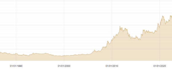 Here is a chart showing the gold price. You can see the dip at the end of the 90s where Brown sold the gold but the massive rise came much later.