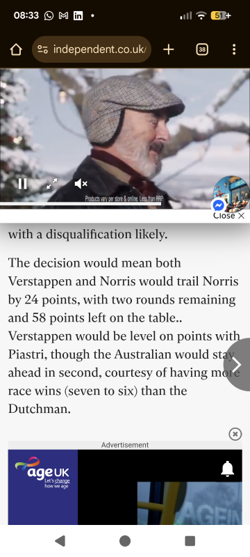 So we would have a title race that unless Norris wins with both Vercrashem and Piastri not scoring would go to the last race.