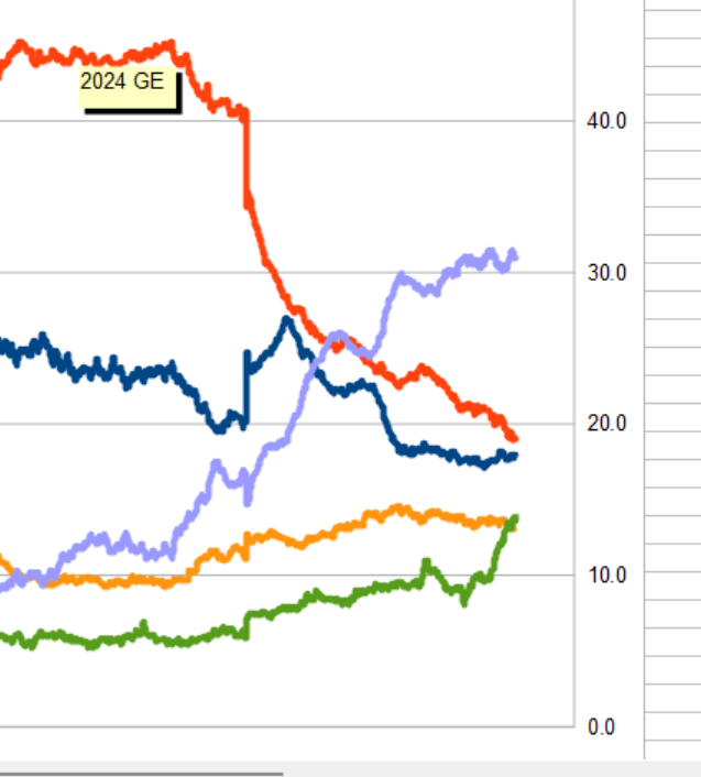 Were I to bet on this, that’s what I would bet on. The reason I haven’t is that I think we’re at least 12 months out from the polls even turning and a chance to extract a bit of profit. I might go in at Starmer’s nadir next May though.