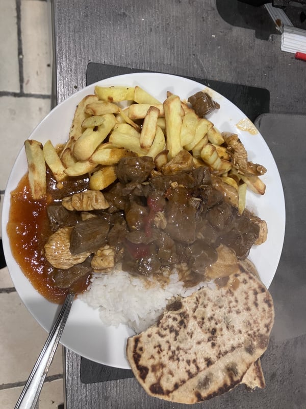 Also with rice, chips, Peshwari naan and mango chutney.