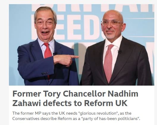 Zahawi, like Berry served in Liz Truss' Cabinet and like Gullis, Holloway, Dorries, Jenkyn, Berry etc ultimately backed Truss over Sunak. Kruger backed Braverman not Sunak too. None of the current or ex Tory MPs who have defected to Reform backed Sunak in 2022.