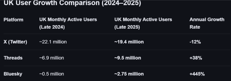 Bluesky is growing rapidly and is noted for having higher engagement in specialised communities, particularly within scientific research and academia.