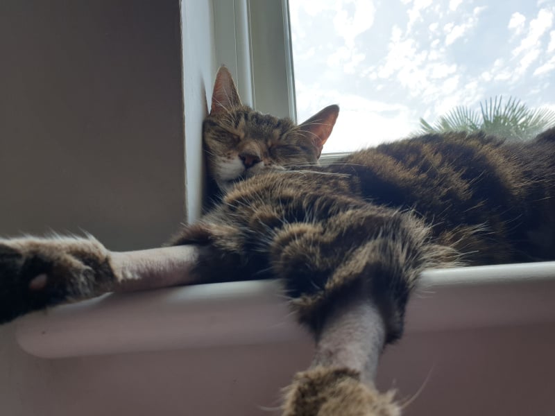This was one of the cats from June, which is why she's got her sleeves rolled up.