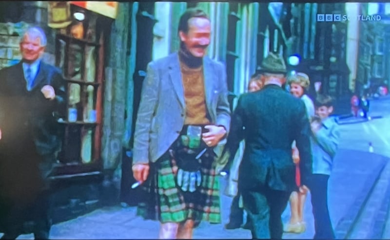 Just had a slightly discomfiting experience watching Greetings from Scotland on BBC Scotland about tourism up here. They were showing holiday footage from a Belgian family who visited in the 1970s. There unmistakably was my dad in his prime wearing highland dress, strolling down the Royal Mile between pubs no doubt, fag in hand. Not a strange experience for anyone with a mildly famous parent I suppose, but spooky for me to see a ghost of someone who died 28 years ago.