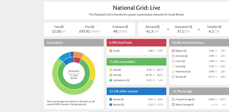 And because of the way our electricity market works, the live UK price per MWh is £100 despite gas only accounting for 3.5gw of generation out of 38 on this windy, sunny day.