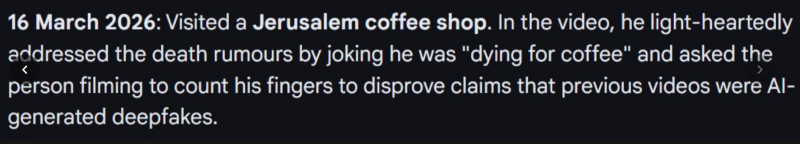 The chat that isn't entirely infected by wishfully thinking Bibi is dead is that the Iranian intelligence has proved more intelligent than expected and seem to have a handle on locations of Bibi and family, therefore Mossad has shat it and pumped out laughable AI pr clips while Bibi is interred in a secret Führerbunker somewhere.