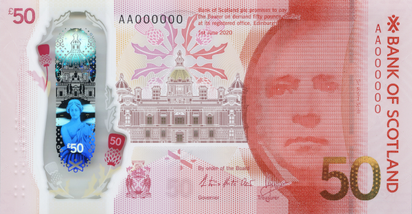 Here's the current North British £50 note, complete with "Four Thistles".
