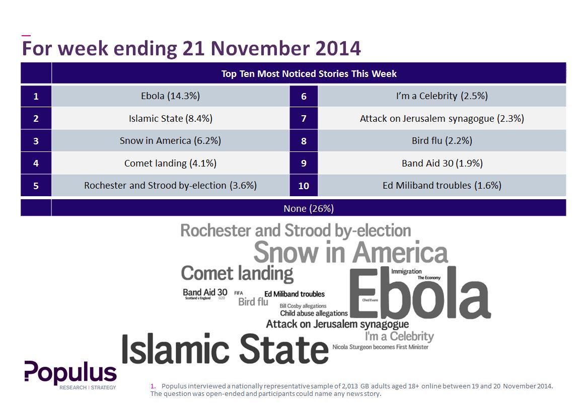The top 10 news stories noticed - at no 5 Rochester (3.6%) and number 10 Ed Miliband's troubles (1.6%)