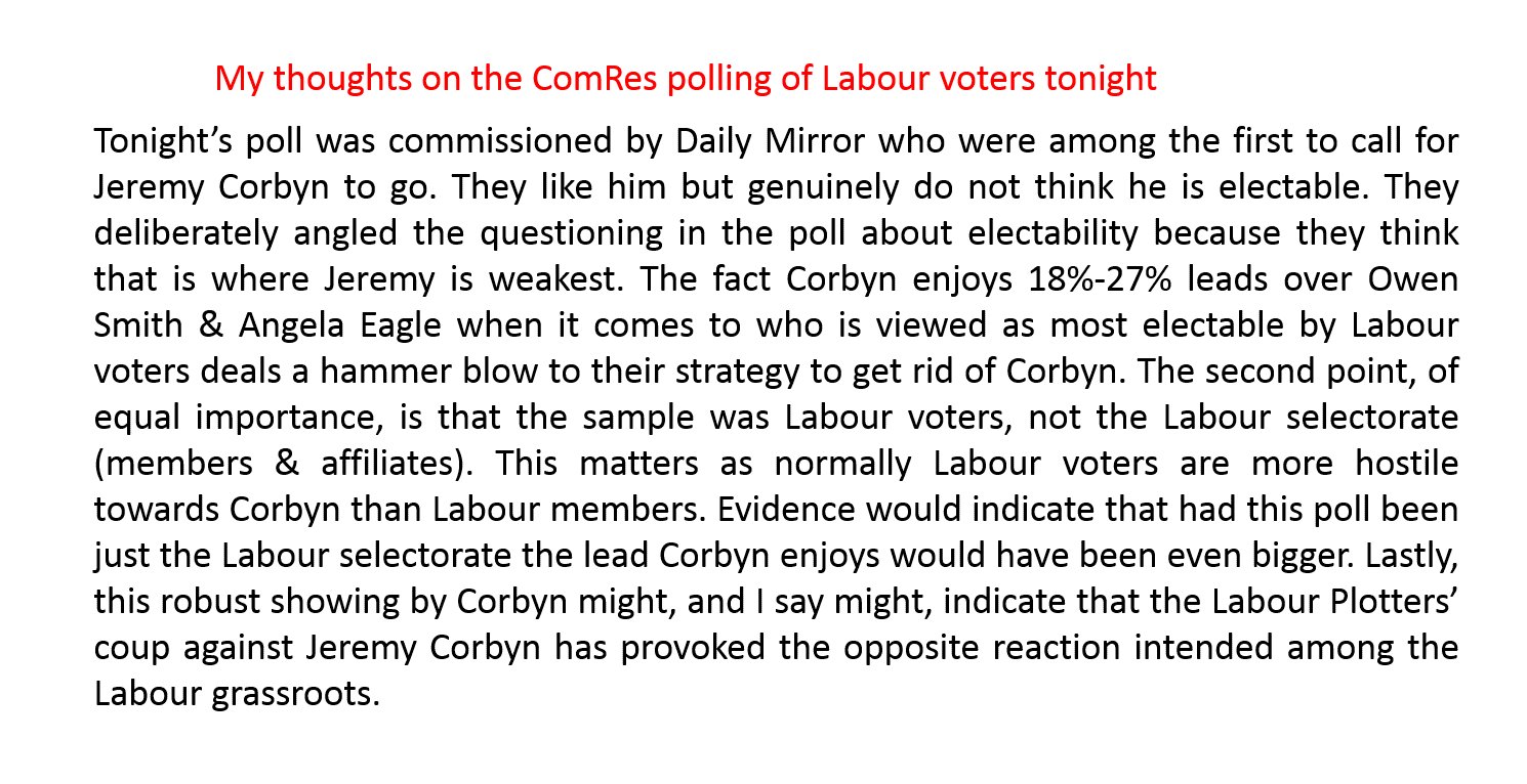 Terribad polling for Labour. Seen one Labour MP already tweeting the 40% of Lab GE2015 voters prefer May over Corbyn polling.