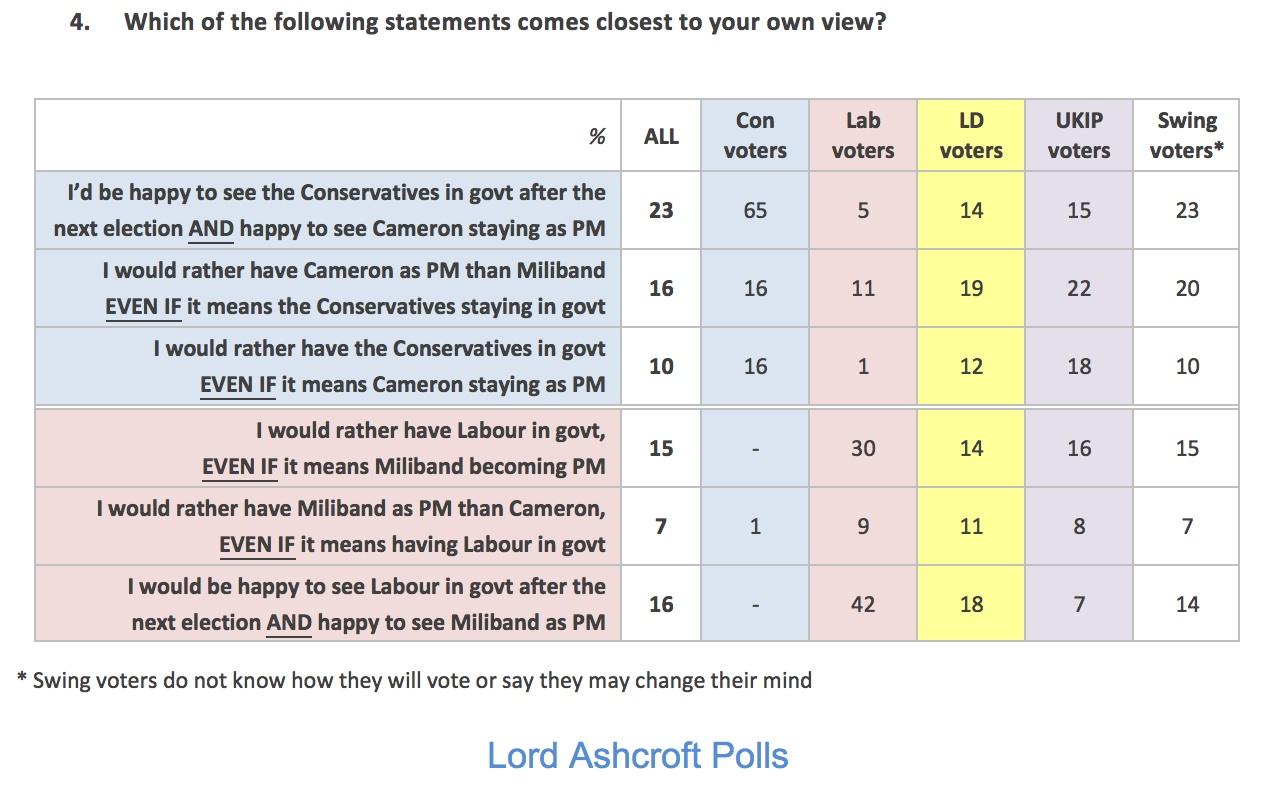 If I were a Labour supporter, I'd goggle at the fact that 1 in 6 current Labour supporters in fact seem to prefer the idea of five more years of the Conservatives, never mind the state of mind of UKIP supporters and swing voters.