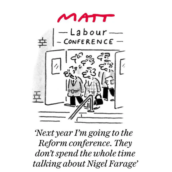 Party political conferences are for tribal speeches, in addition to political, and Farage is the correct target for now. I don't think Starmer went for Farage anything like hard enough, and I hope he makes a suitably blunt response to whatever Farage says. He needs to define