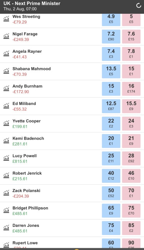 I don’t dislike EdM, but there seems to be the idea floating around that he has grown into some kind of elder statesman. To me he seems to have got weirder and less relatable with age. I think he’d be a disaster really, but if I were on at 100/1 I’d be happy. He’s a small loser in my book, the big winners would be Lucy Powell, David Lammy, Torsten Bell or Rachel Reeves, although nothing life changing. Worst result is Nigel Farage!