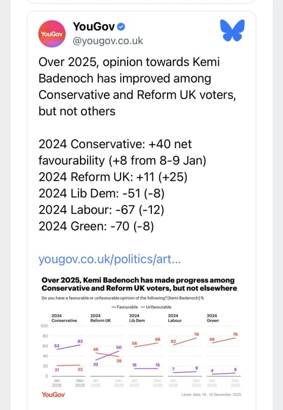 So Badenoch is the only leader whose reputatin hasn't been damaged by 2025?