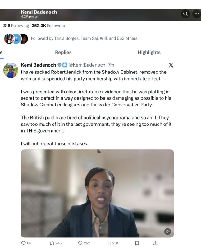 She has done well there to get ahead of the story. And good for Tory electoral prospects, without the likes of Jenrick they can win back plenty of disgruntled centrists if they become more sensible by 2028/9.