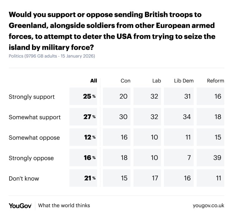 It is really interesting that Reform is so out of line on this. 39% "strongly oppose". If the bulk of Reform's support is from former Tories, then they must have had their minds melted in the journey across.