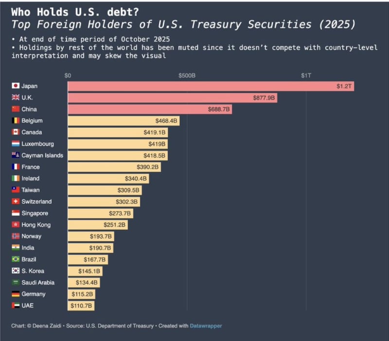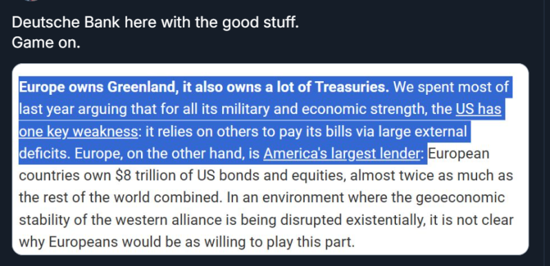 A lot is held by central banks. It can be weaponised alongside tariffs. Now is the time. If the markets think it is a possibility, they will react.