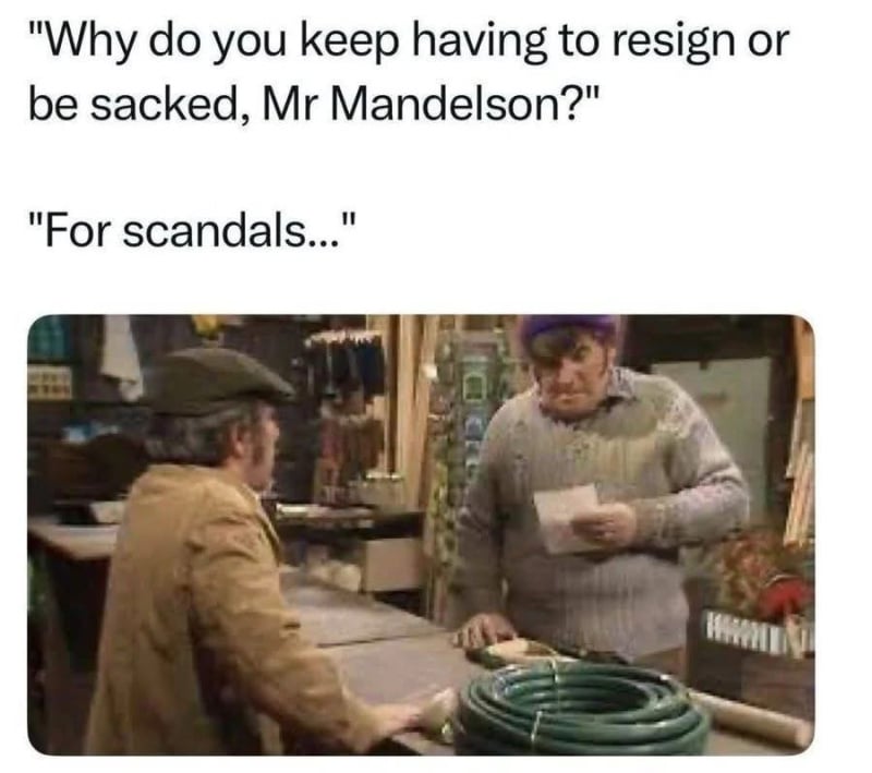 I have picked up a like from Big G for that, but where are the likes from the rest of you - the reality here is like when Bobby went to Reform Kemi grinned “he’s not our problem now”, for all those in Labour movement who really didn’t like Mandy from the start 40 years ago, or who really came to not like him along the way, this is their “liberation day”. It’s a day for so many in Labour to have their “he’s not our problem now” happy moment. It’s almost like the rest of us are intruding in that.