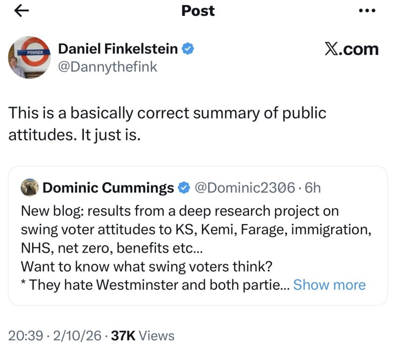 Interesting that pundit Daniel Finkelstein thinks Big Dom’s analysis of the public mood is correct