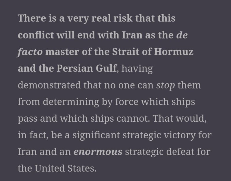 I think one of the miscalculations that the article doesn't touch on, is Iran's failure to establish deterrence in response to the 12-day war in 2025. Iran's lukewarm response then failed to deter this later attack.