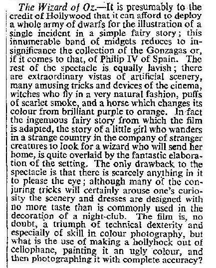 Wizard of Oz premiered #onthisday in 1939. @thetimes reviewer didn’t think much of Technicolor… bit of a fad